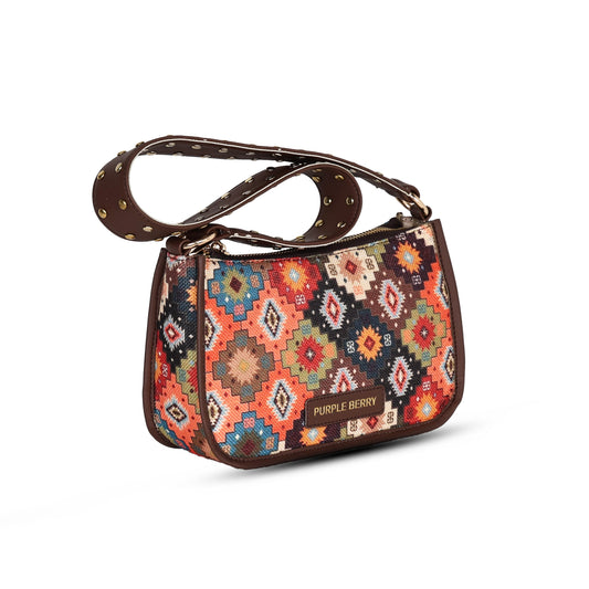 Ariana Cross Stitch Sling Bag - Mocha Blush