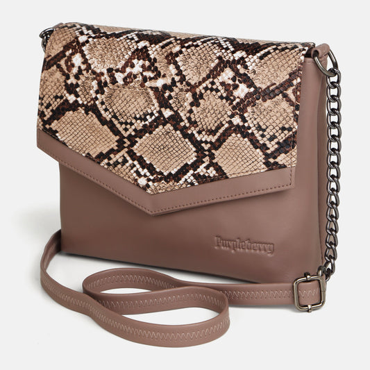 Kassia Sling Bag Cozy Peach Snake Printed