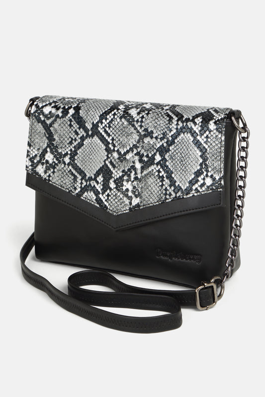 Kassia Sling Bag Carbon Black Snake Printed