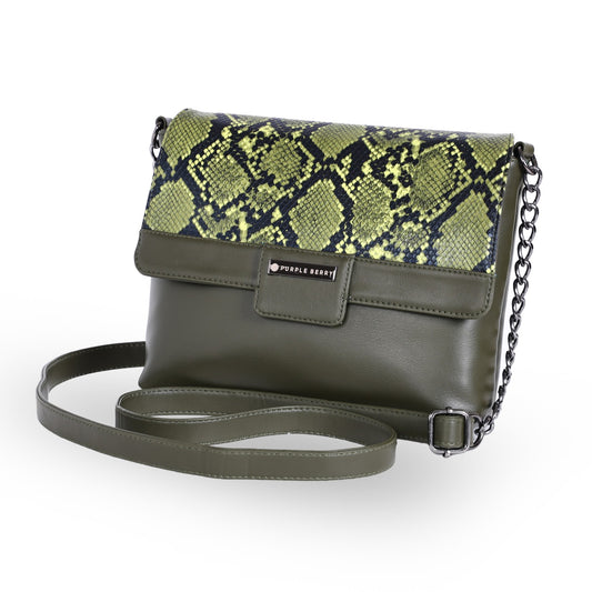 Kassia Sling Bag Forest Green Snake Printed