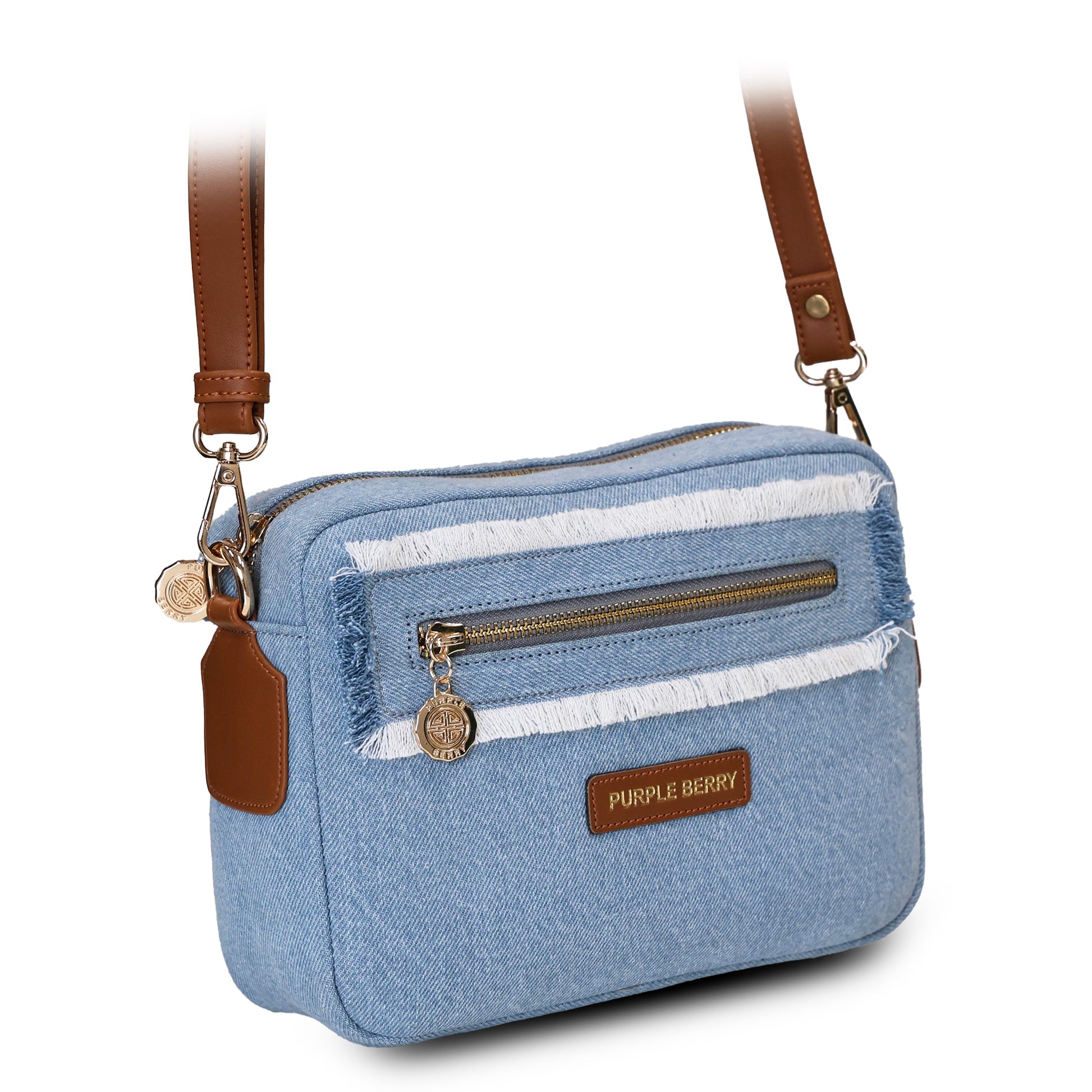 The Elara Denim Luxe Sling Bag by Purpleberry redefines everyday elegance. Crafted from premium denim with refined faux leather trims and gold hardware, this stylish sling adds a touch of luxury to your daily look. Lightweight, versatile, and 100% veganโperfect for modern women who love fashion with purpose.