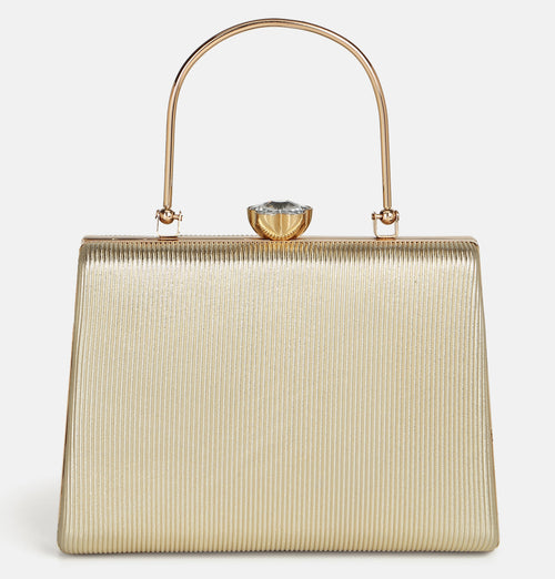 Beautiful wedding clutch Featuring an eye-catching embroidery pattern, it will lend the right amount of glamour to your attire. The round Golden handle for ease to carry making it a female's best partner for the functions to attend and flaunt.