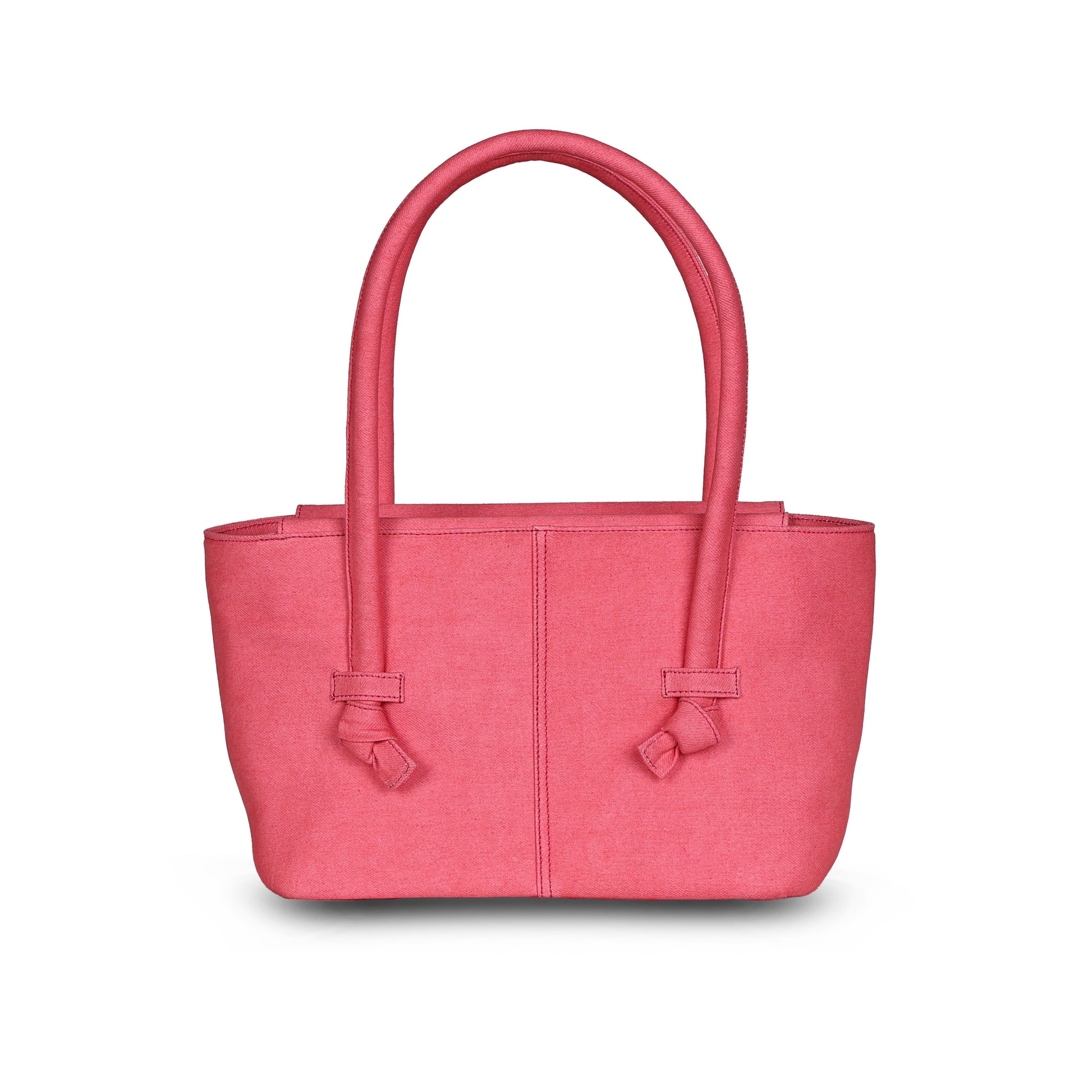 Exterior details: comfortable handle and knotted shoulder strap.